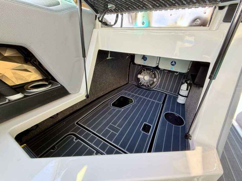 • Sliding Reversible Stern Seat & Flip-Up Lounge Seat (Port)
